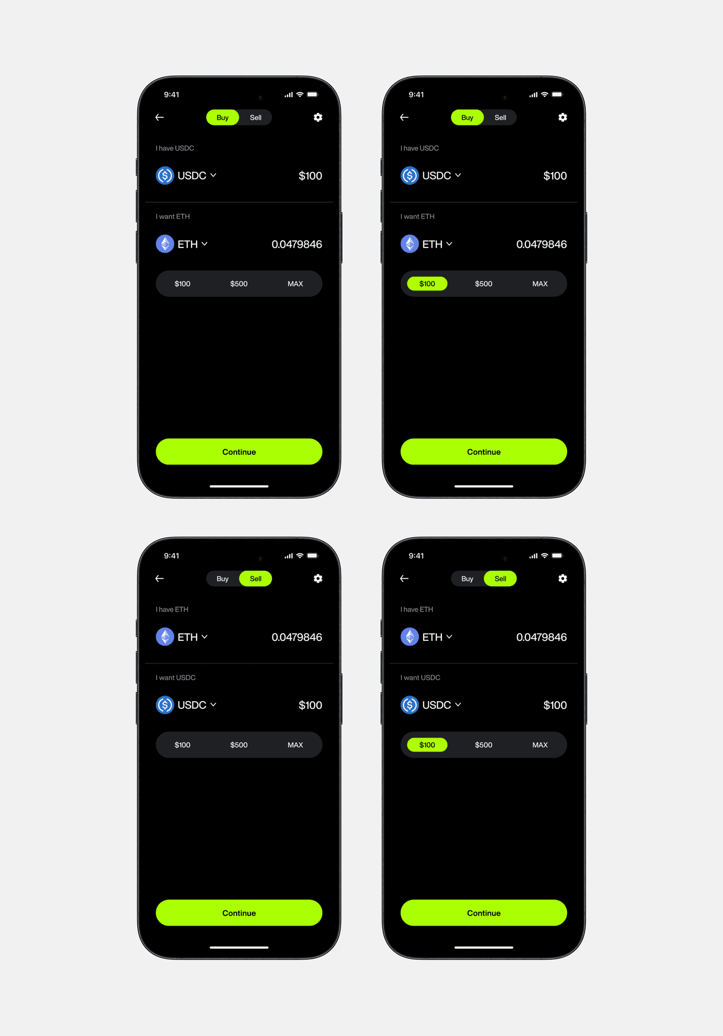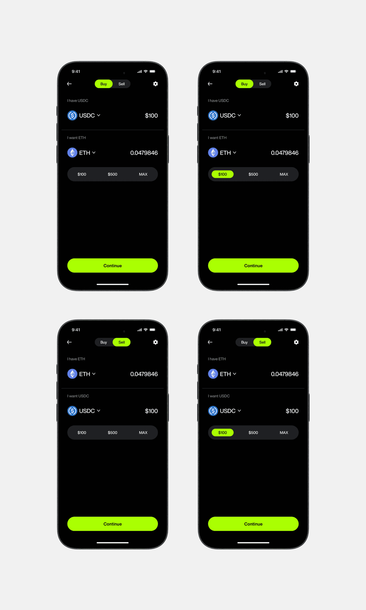 To improve the convenience and speed of operations, I have added the ability to instantly switch between screens. Users can now easily switch from buying to selling cryptocurrency and back, without delays and complex transitions. This approach provides a smoother and faster process, allowing users to quickly respond to market changes and effectively manage their assets.